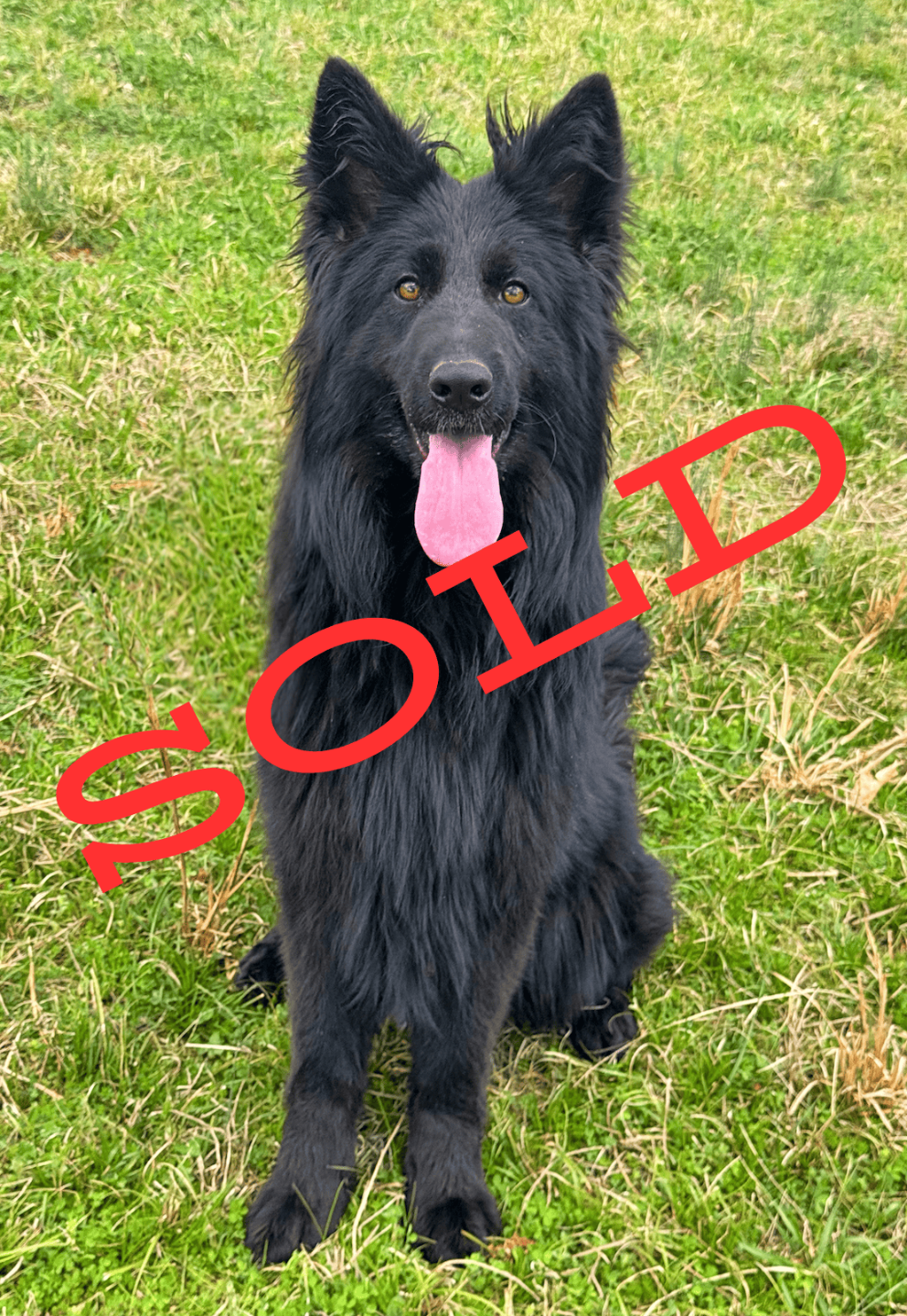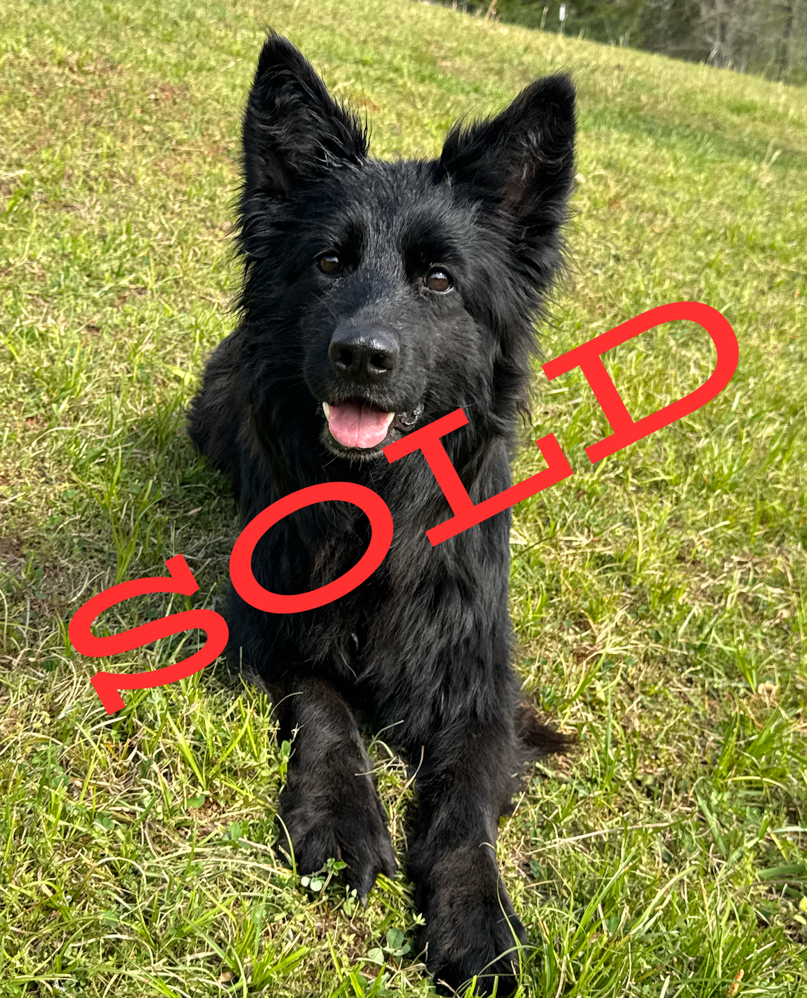 Athena is a GORGEOUS 9 month old solid black long coat female with an amazing temperament, and personality. She absolutely loves kids,and is the perfect companion for the entire family. Bred from healthy, proven bloodlines, she’s highly trainable, and eager to please. She is loving, loyal, and has a beautiful striking presence.
